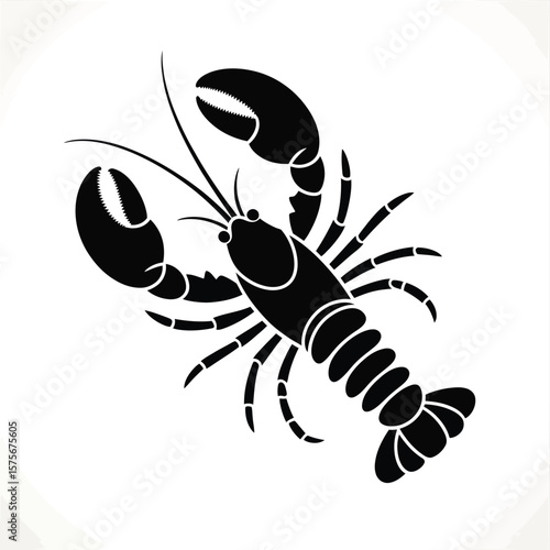 © MDANTOR, Obraz premium Black silhouette of a lobster with claws and segmented tail on a white background