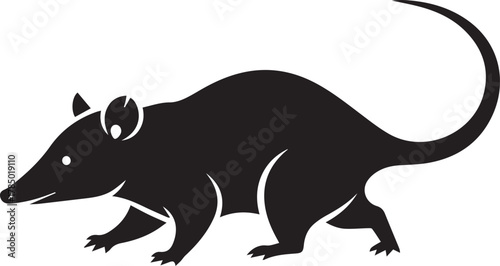 © MST MAJADA, Fototapeta premium Black silhouette of a long-tailed rodent walking leftward side view with white accents