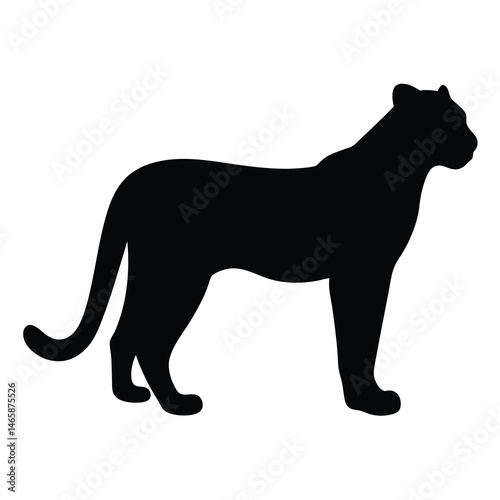 © Tanjila, Fototapeta premium Black Silhouette of a Majestic Puma Standing Still in Profile View