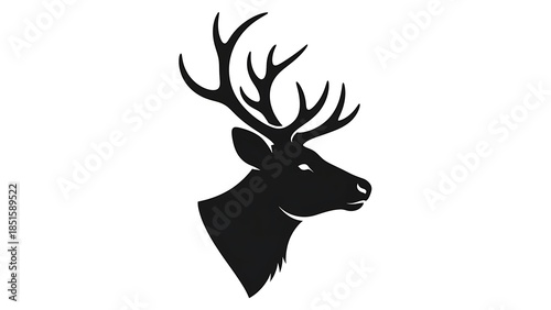 © Rahat, Fototapeta premium Black silhouette of a majestic stag head with large antlers for wildlife hunting and nature themed branding