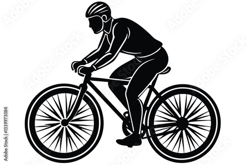 © shopone, Fototapeta premium black silhouette of a man biking riding white background
