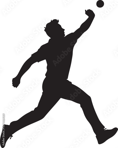 © MDJAJALALOM, Fototapeta premium Black silhouette of a man jumping to catch a ball catching