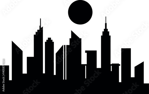 © DesignVectX, Naklejka premium Black silhouette of a modern city skyline at sunset in flat vector art