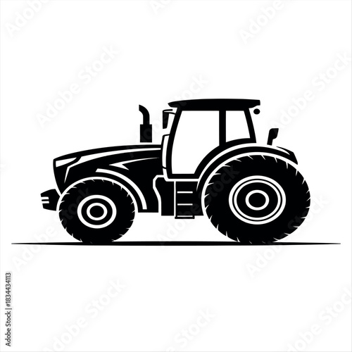 © Hira, Obraz premium Black silhouette of a modern farm tractor on a white background