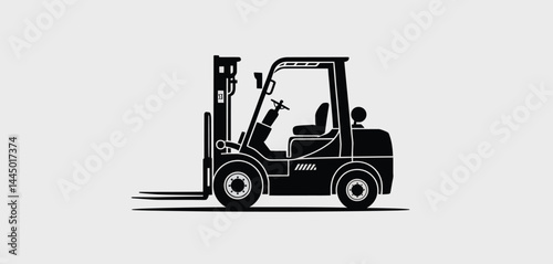 © Stocksitebd, Fototapeta premium Black Silhouette of a Modern Forklift Truck