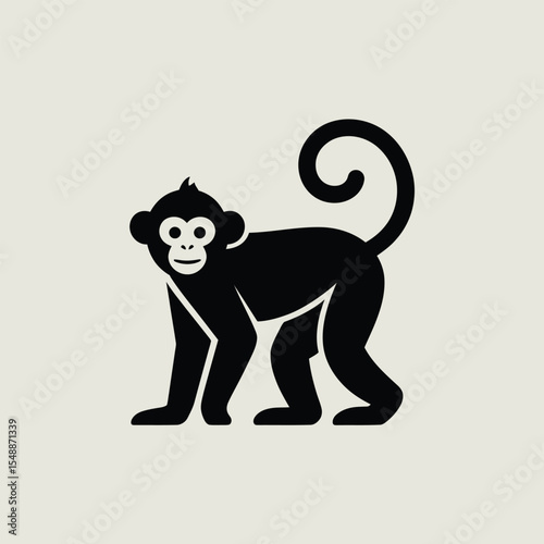 © Alvi, Fototapeta premium Black Silhouette of a Monkey Standing on a Light Gray Background Simple Minimalist Animal Icon Design