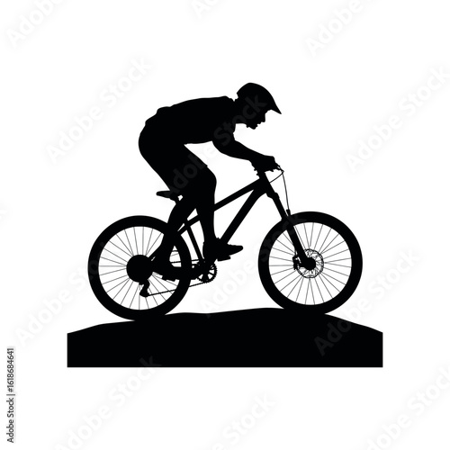 © AH STUDIO'S, Fototapeta premium Black silhouette of a mountain biker riding on a dirt path cyclist biking