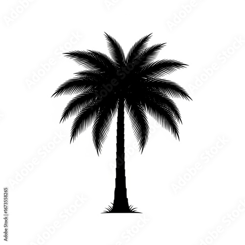 © Ai_Images, Fototapeta premium Black silhouette of a palm tree on a white background