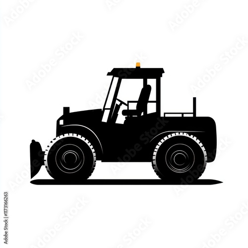 © lestari, Fototapeta premium Black Silhouette Of A Powerful Snow Plow Tractor