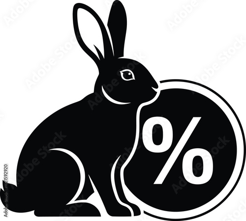 Obraz premium Black silhouette of a rabbit with a percentage sign