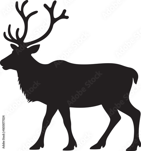 © vector, Obraz premium Black silhouette of a reindeer with branching antlers on a white background animal wildlife