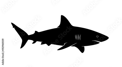 © tarsi, Fototapeta premium Black silhouette of a shark swimming.
