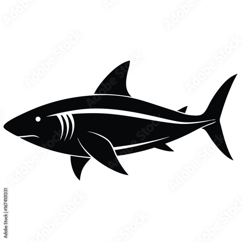 Obraz premium Black Silhouette of a Shark with White Stripes black and white