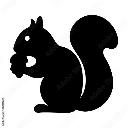 Obraz premium Black Silhouette of a Squirrel Holding an Acorn on White Background