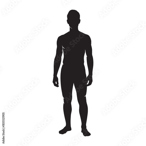 © DURJOY_SAID, Fototapeta premium Black silhouette of a standing man on a white background male human