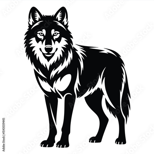 © Jayeda akter, Fototapeta premium Black Silhouette of a Standing Wolf animal wildlife 1