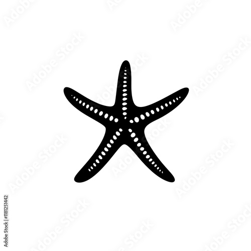 Obraz premium Black silhouette of a starfish isolated on white background.