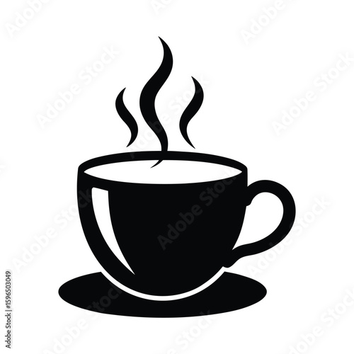 © Jannatun, Obraz premium Black silhouette of a steaming coffee cup on a saucer