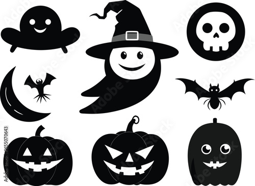 Fototapeta premium Black Silhouette of a Stylish Beard and Mustache, Pamkin,Halloween Vector Illustration,set of halloween icons,Halloween pumpkin silhouette collection,halloween icon silhouette vector,ghosts silhouette