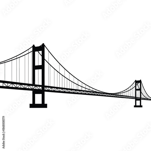 © ariyan, Obraz premium Black silhouette of a suspension bridge on a white background