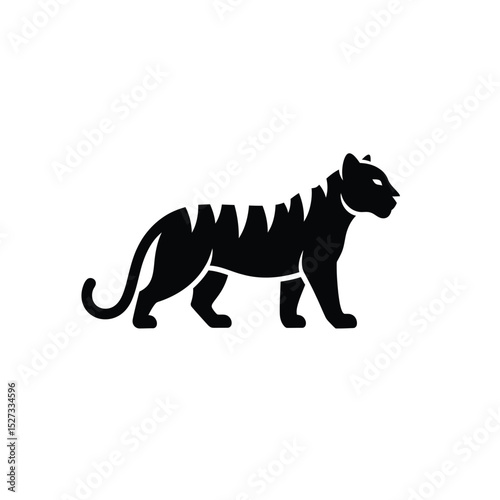 © MDMahfus, Obraz premium Black silhouette of a tiger walking side profile