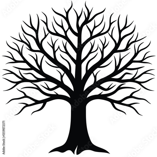 © FEROZA, Obraz premium Black Silhouette of a Tree with Bare Branches on White Background Isolated