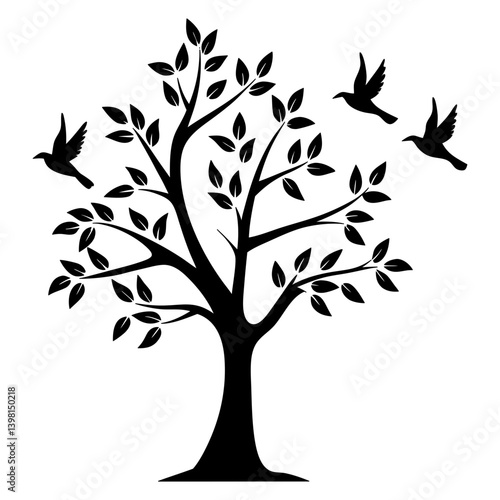 Obraz premium Black Silhouette of a Tree with Birds in Flight Peaceful Nature Scene