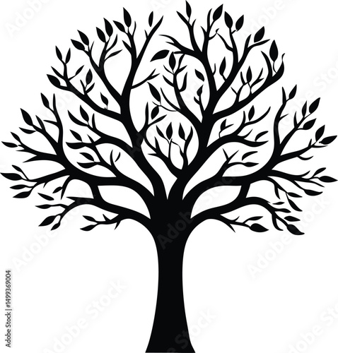 © Prionty, Obraz premium Black Silhouette of a Tree with Leaves