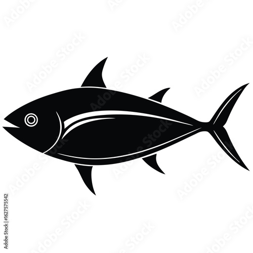© Alamgir, Obraz premium Black silhouette of a tuna fish with white accents vector