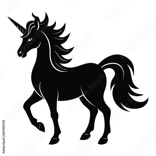 Obraz premium Black silhouette of a unicorn with flowing mane and tail 4