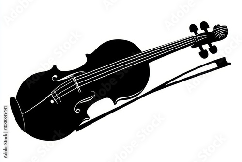 © Michael, Obraz premium Black silhouette of a violin on a white background.