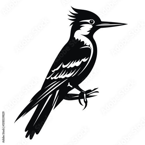 © StockOtaku, Obraz premium black silhouette of a woodpecker