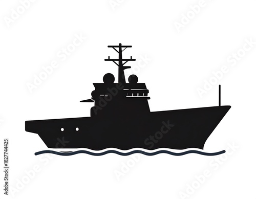 Obraz premium Black silhouette of a yacht on a white background, featuring a multi-level structure and mast