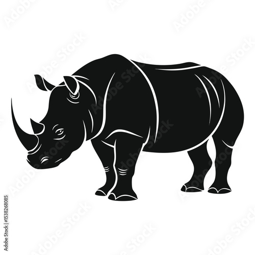 © Nasir, Fototapeta premium Black Silhouette of African Rhinoceros in Minimal Design