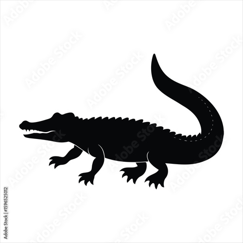 © Jannatun, Fototapeta premium Black silhouette of an alligator on a white background