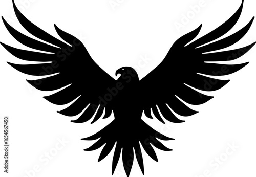 Obraz premium Black silhouette of an eagle flying with wings fully spread