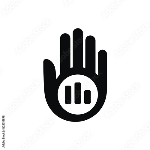 © Harunur, Obraz premium Black silhouette of an open hand with a circular graph inside the palm silhouette