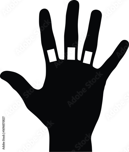 Fototapeta premium Black silhouette of an open hand with stylized fingers showing squares, symbolizing counting or signals.