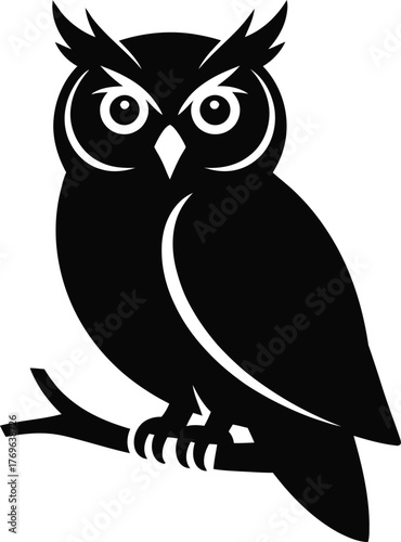 © Sohan, Fototapeta premium Black silhouette of an owl perched on a branch