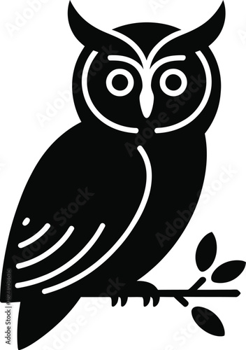 © meril, Fototapeta premium Black silhouette of an owl perched on a branch bird
