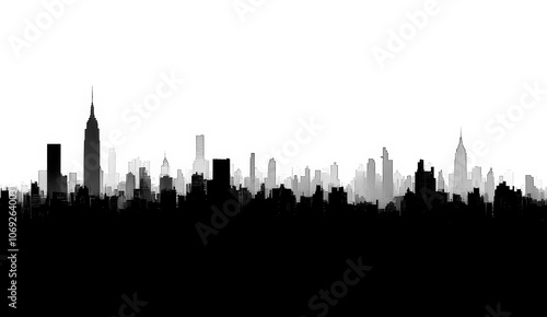 © Michael, Naklejka premium Black Silhouette of big modern city on a white background.
