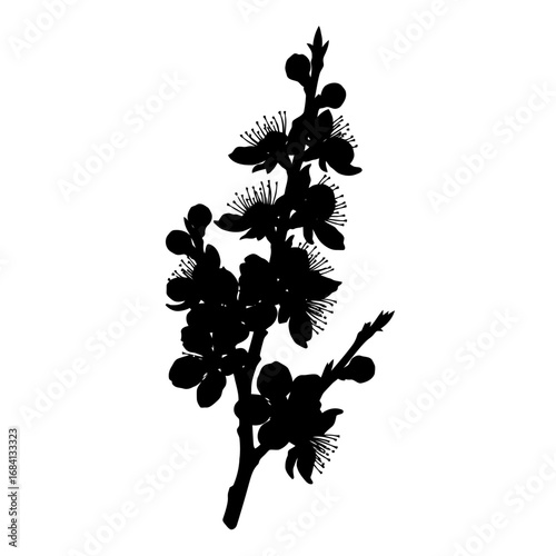 Naklejka premium Black silhouette of cherry blossoms on white background silhouette isolated...