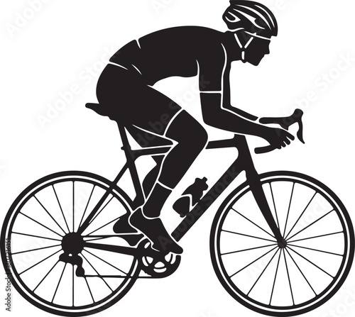 © Mazharul, Fototapeta premium black silhouette of cyclist on white background, vector