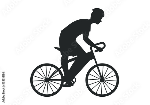Fototapeta premium Black silhouette of cyclist riding on bike, vector illustration
