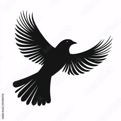 Obraz premium Black Silhouette of Flying Bird with Spread Wings on White Background