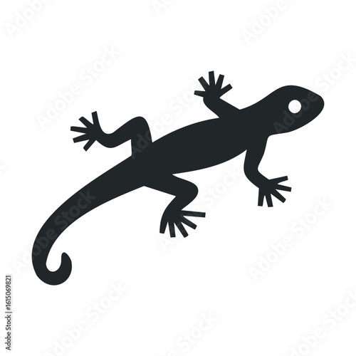 Naklejka premium Black silhouette of gecko lizard with curved tail on white background