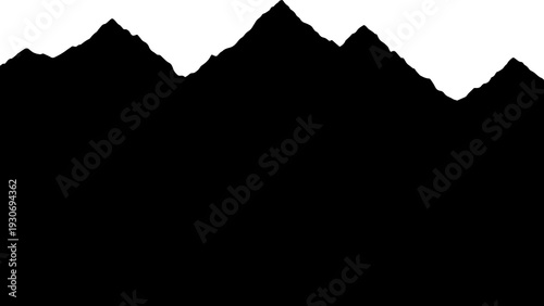 © Mst Shafia, Obraz premium Black silhouette of jagged mountain peaks against white background