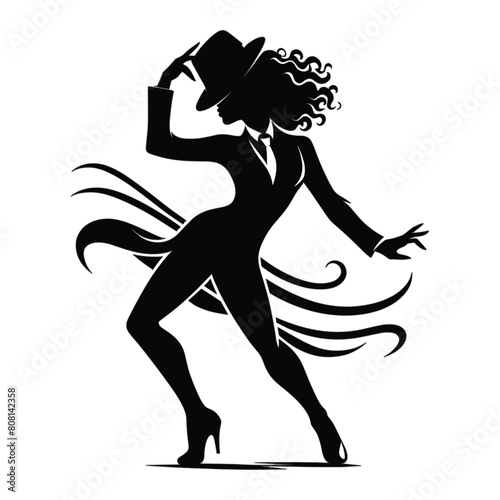 © StockerShawon, Fototapeta premium Black silhouette of Jazz dancer vector