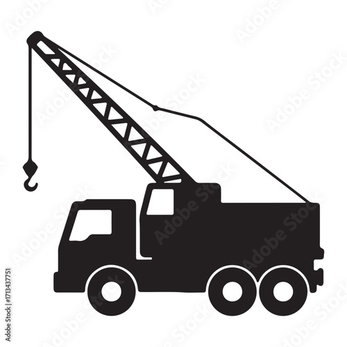 © MD, Naklejka premium Black Silhouette of Mobile Crane Truck Construction Vehicle Heavy Machinery for Lifting and Building Projects isolated on White Background