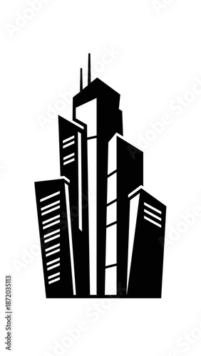 © Raka, Obraz premium Black Silhouette of Modern City Skyscrapers 3.